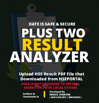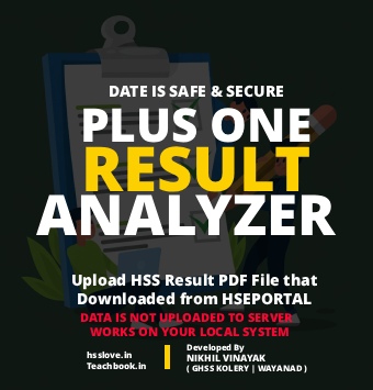 പ്ലസ് വൺ റിസൾട്ട് അനാലിസിസ് ചെയ്യുവാൻ ‘PLUS ONE RESULT ANALYZER ‘ എന്ന അപ്ലിക്കേഷനും, പ്ലസ് ടു റിസൾട്ട് അനാലിസിസ് ചെയ്യുവാൻ ‘PLUS TWO RESULT ANALYZER‘ എന്ന അപ്ലിക്കേഷനും ഉപയോഗിക്കാം.